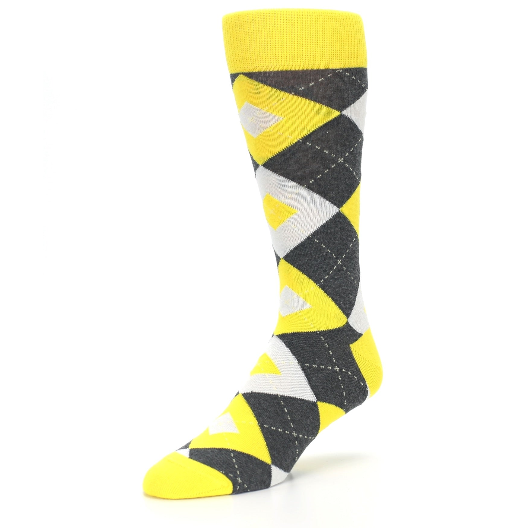 Daisy Gray Argyle Wedding Groomsmen Men’s Dress Socks