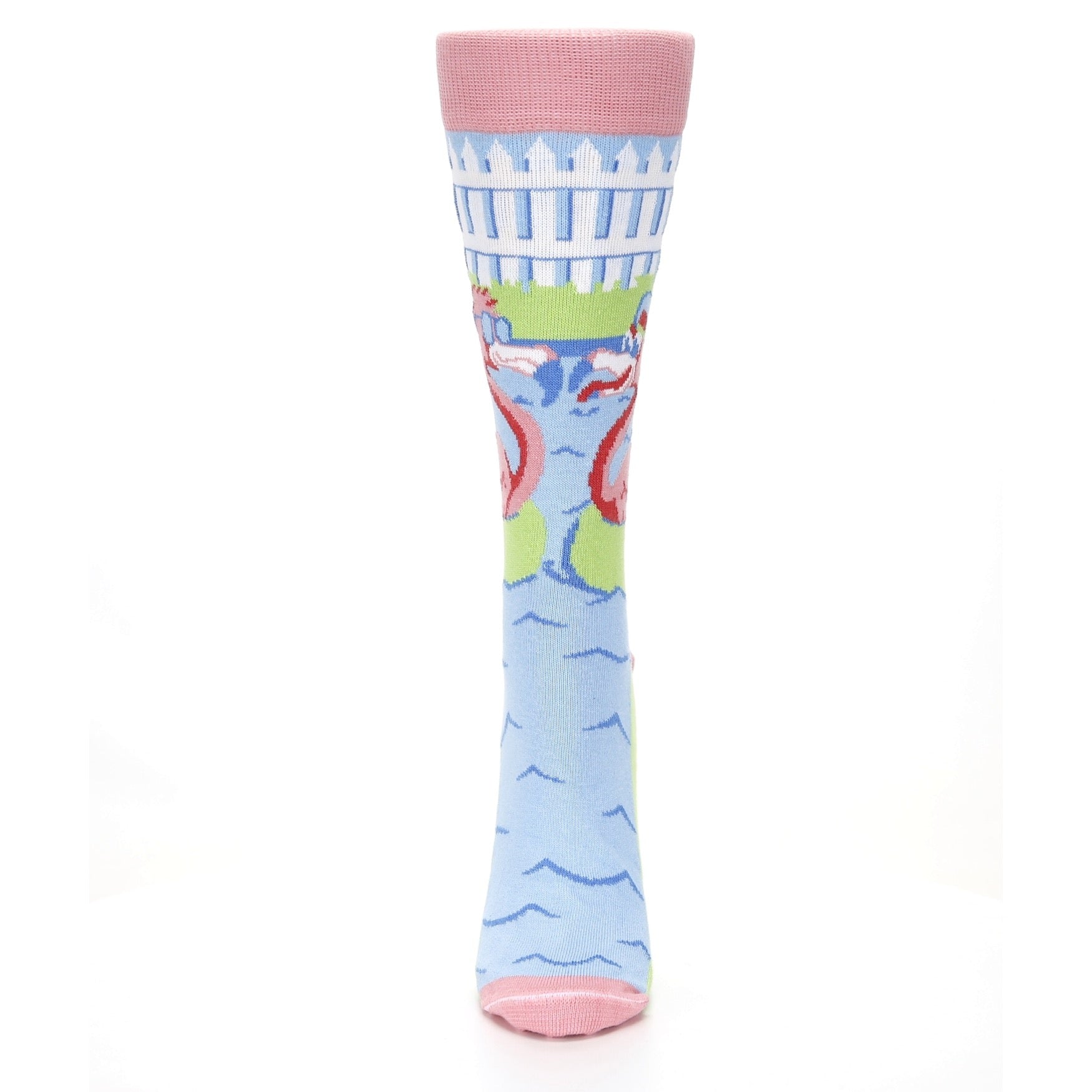 Get your flamingo on and go mingle with these awesome novelty women's dress socks! With beautiful pastel pink, blue and green colors, these funky socks scream being outdoors and having some fun in the sun. Flamingos are an extremely unique animal and now you can have crazy socks that will make you feel unique too. These wild socks will make you stand out from the crowd, just like a flamingo.