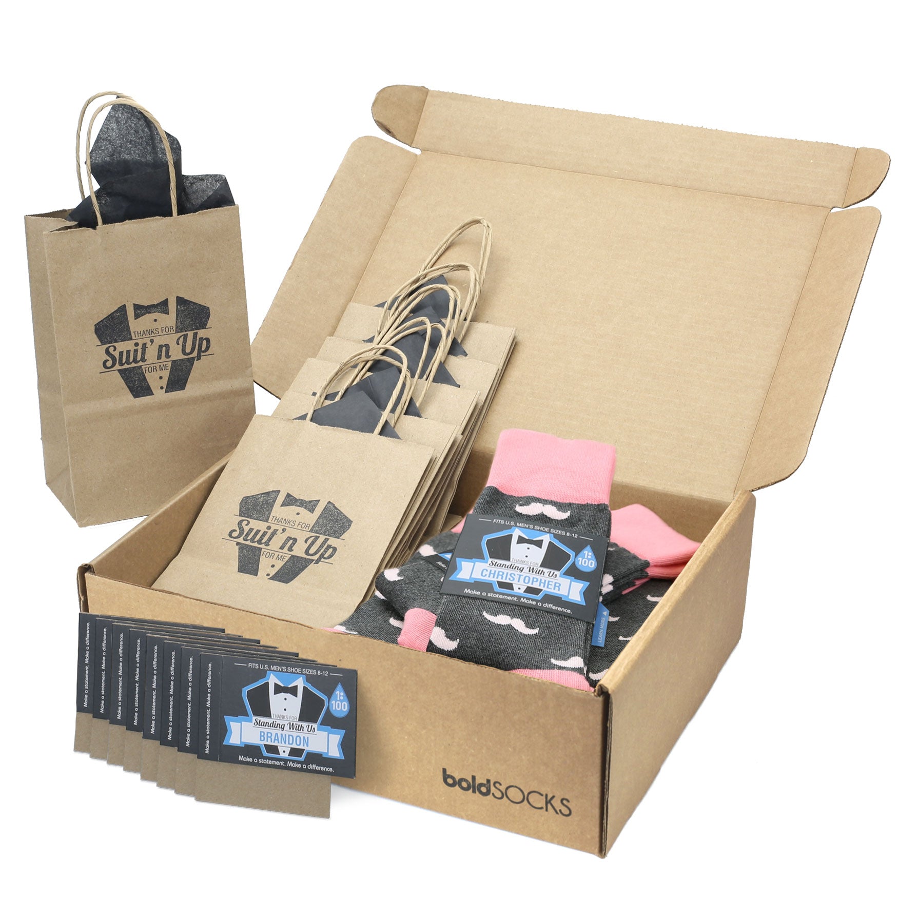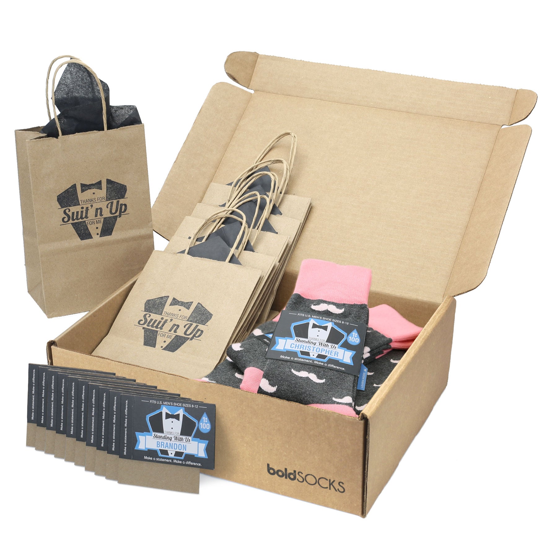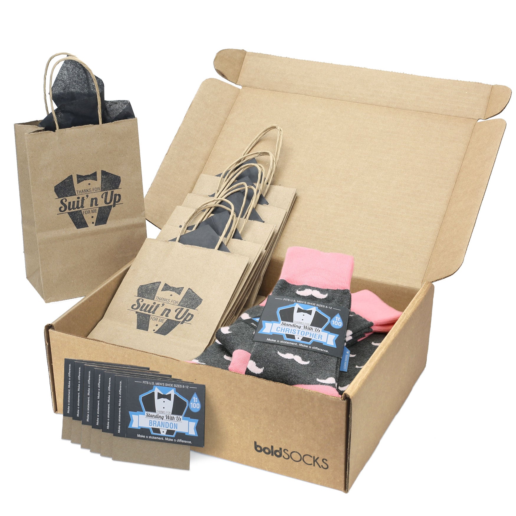 Throw the wedding of your dreams with these fun flamingo groomsmen socks! These cool groomsmen gifts are the perfect opportunity to let your guys know how much you appreciate them and also show off your impressive gift-giving skills. What better way than to express your wild side than with this awesome groomsmen gift set? You can even add custom text and personalized labels to these wedding socks like names, initials or the date for an extra special gift.