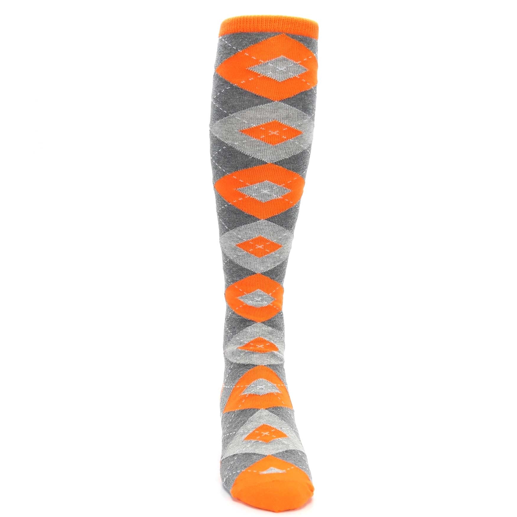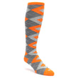Tangerine Orange Gray Argyle Socks - Men's Over-the-Calf Socks
