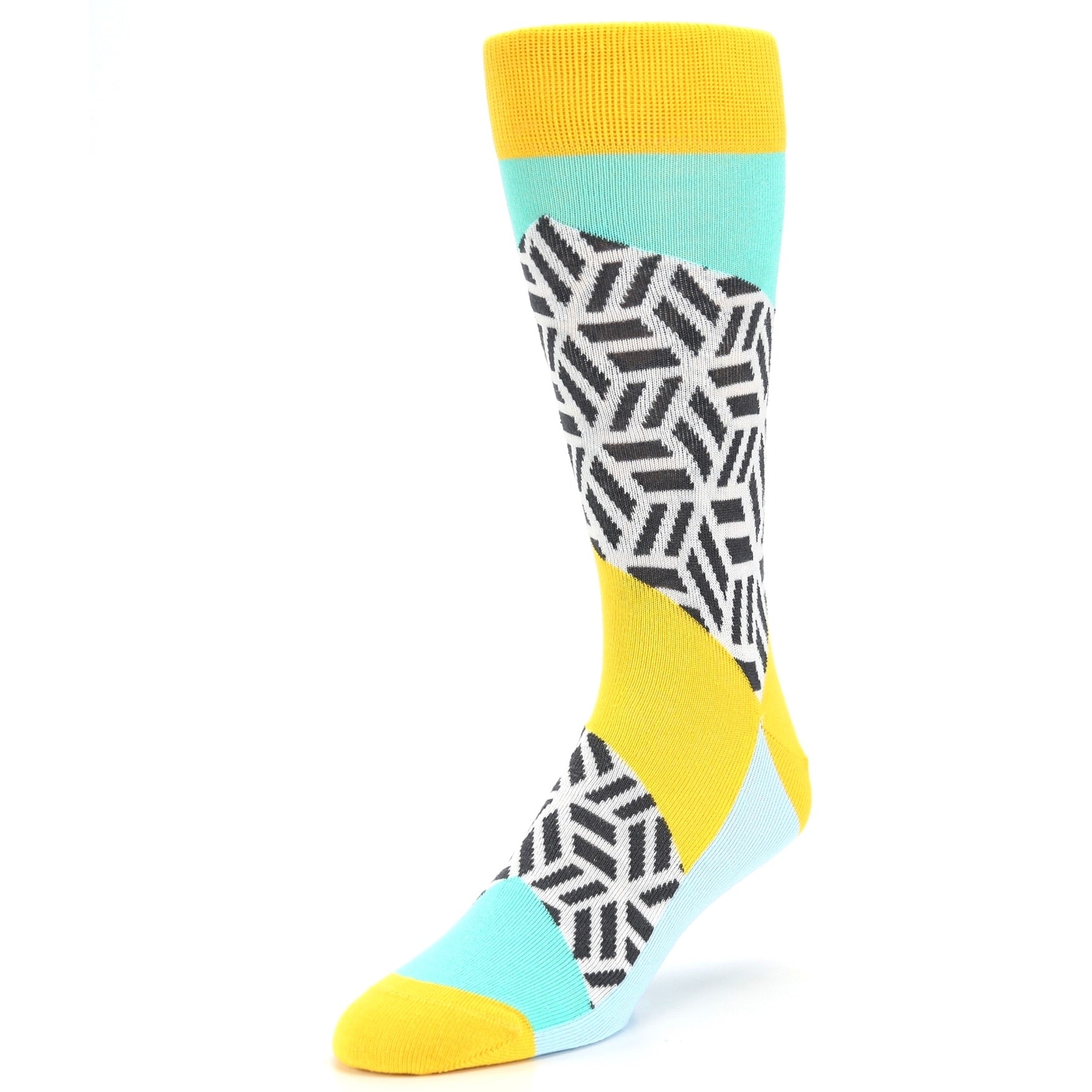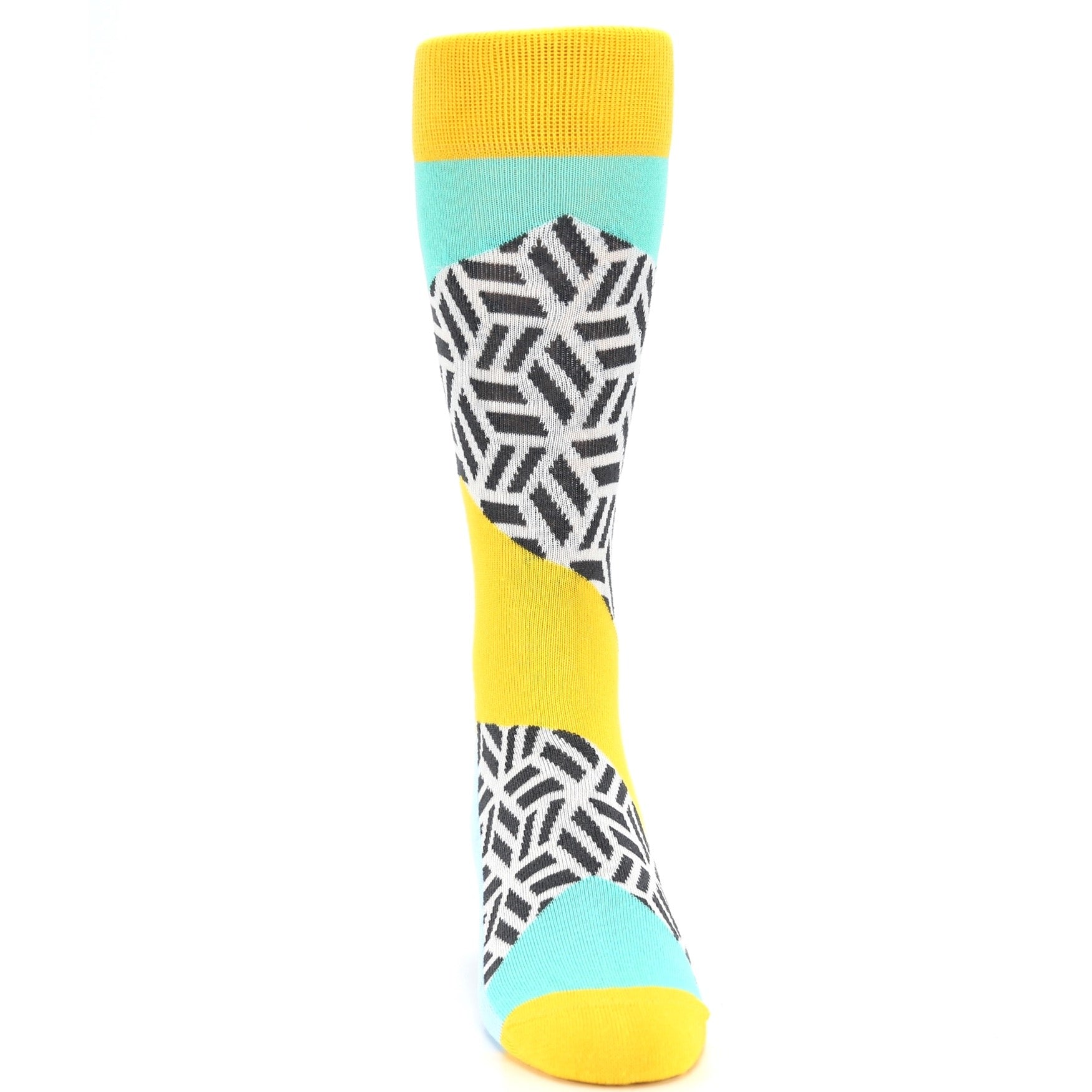 Teal Yellow Hex Block Socks - Men's Dress Socks